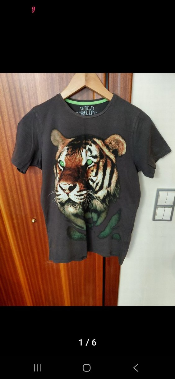 Gri renkli, erkek çocuk tişörtü. Kısa kollu ve yuvarlak yaka. Kaplan baskılı. temiz ürün.