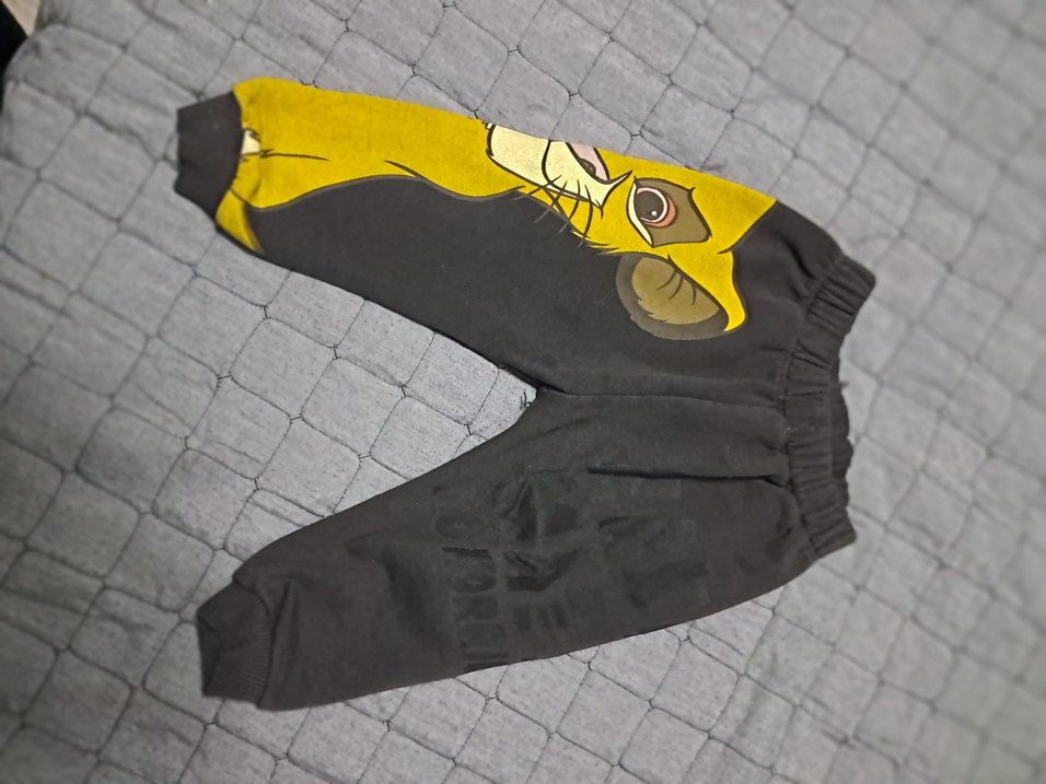 Yumuşak fleece kumaştan, bol kesim ve baskılı desenli gri erkek çocuk eşofman altı. rahat sokak stili için uygundur.