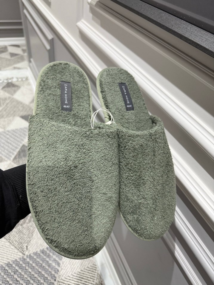 Zara erkek ev terliği. Sıfır üründür etiketi üzerinde. 46/47 no. %100 pamuklu havlu kumaştan yapılmıştır. Güncel fiyatı 1599 mağazada. İndirim yapmıyorum kesinlikle fiyat sondur
