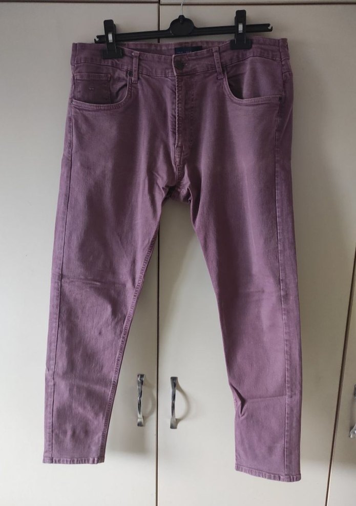 Boy 96 cm paça 16 cm bel 45 cm'dir.Kemer geçme yerinden ufak bir tamir gördü.Belden daraltma işlemi yapıldı.Kullanıma engel herhangi bir sorunu yoktur.Rengi gül kurusudur.L beden uyumludur.