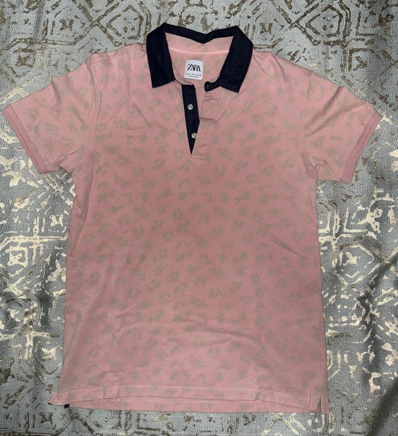 Zara Erkek Pembe Baskılı Polo Yaka Tişört