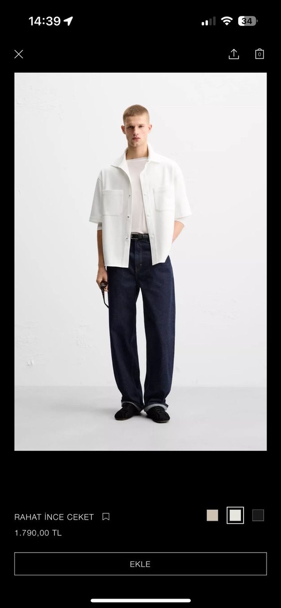 Zara erkek rahat ince ceket gömlek