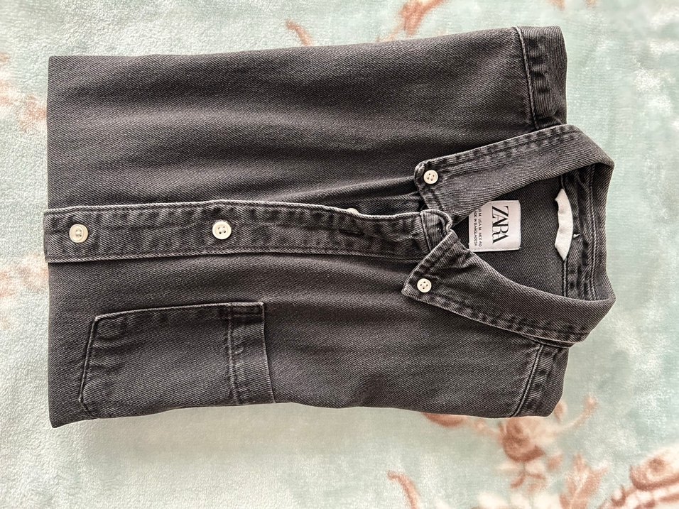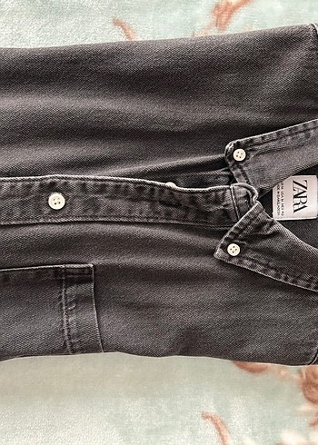 Zara Erkek Siyah Denim Düğmeli Gömlek