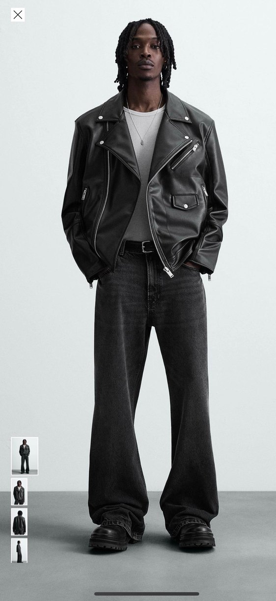 Zara Erkek Siyah Deri Biker Ceket
