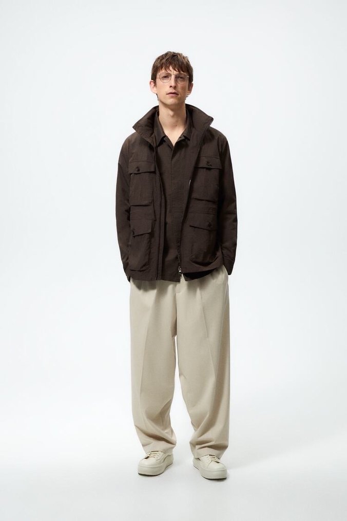 Zara erkek, teknik mont/ceket. Gizli kapüşonlu. Yaklaşık olarak ölçüler; koltuk altından genişlik 63 cm , boy 74 cm, omuzdan kol boyu 65 cm. Hiç kullanılmadı. XL beden.