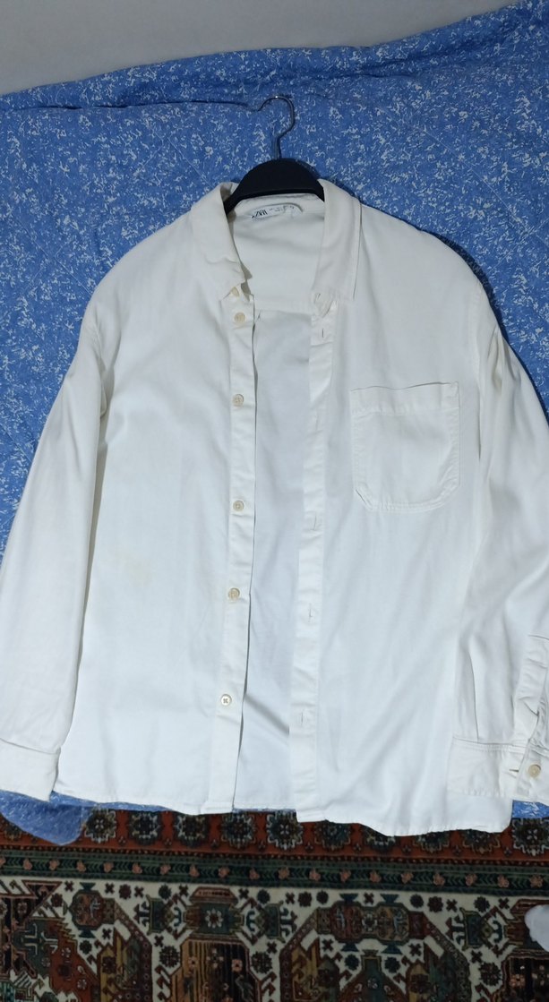 ZARA Esnek Kumaş rahat beyaz gömlek L-XL