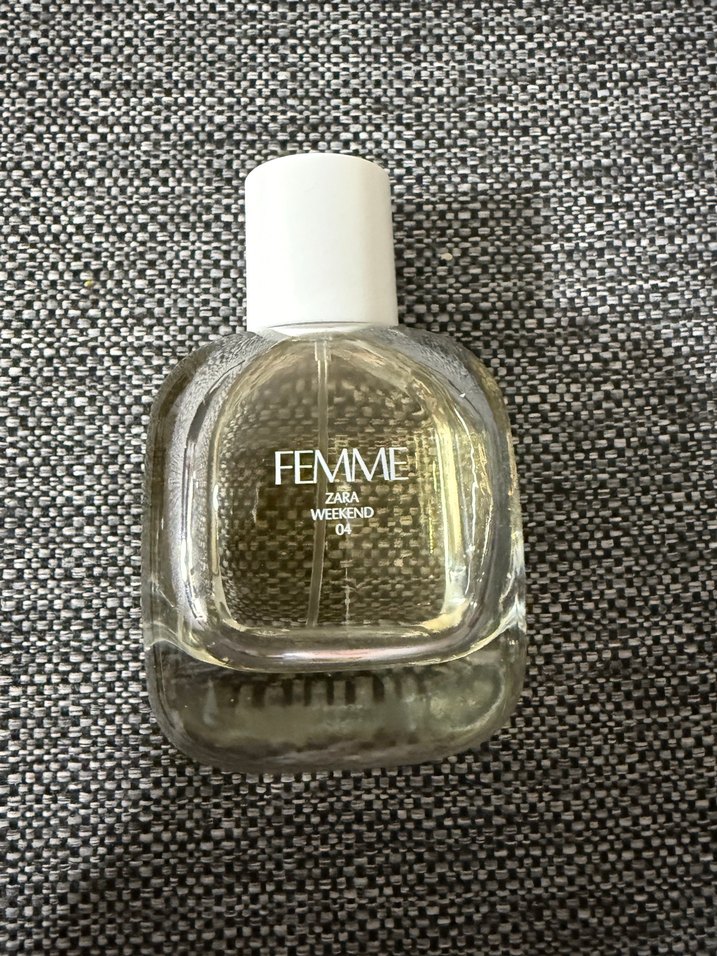 Zara Femme kadın parfümü, beyaz kapaklı şeffaf cam şişede, ferah ve zarif bir koku sunar. Ürünü çok az kullandım görselde görüyorsunuz ihtiyaç fazlasından satıyorum orijinal Zaradır