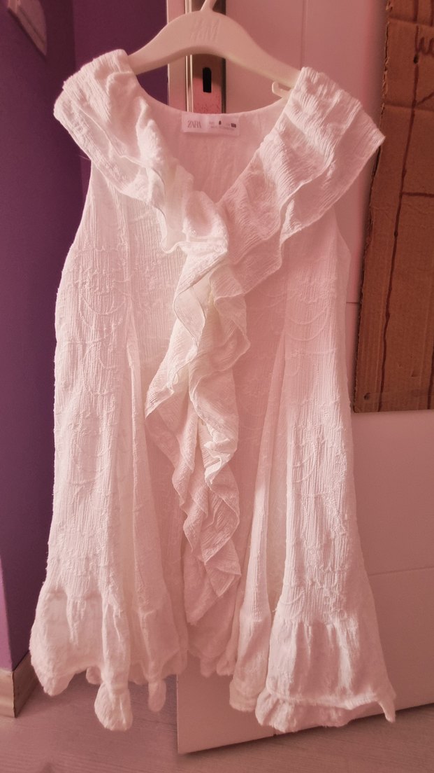 zara fırfırlı Beyaz Keten kız çocuk elbise