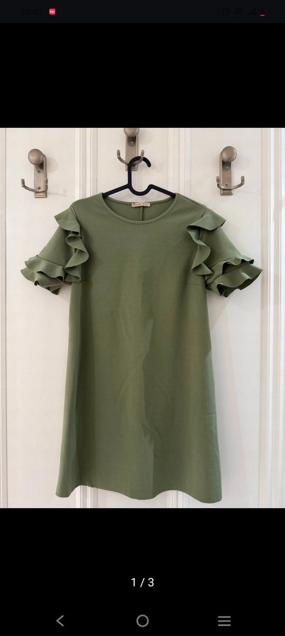 Zara Fırfırlı Kısa Kollu Haki Midi Elbise