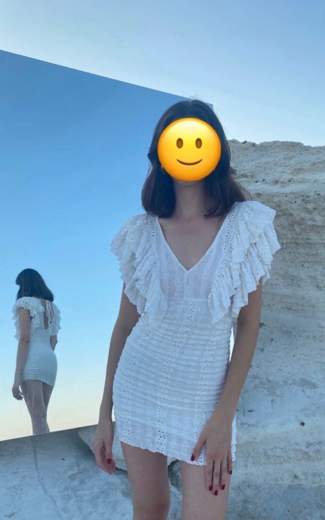 Zara Fırfırlı V Yaka Beyaz Keten Mini Elbise