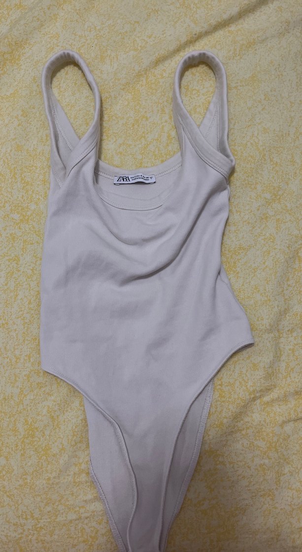 Zara'dan kolsuz, vücuda oturan fit kesim body. Normal boyda ve desensiz, yumuşak kumaştan yapılmıştır.