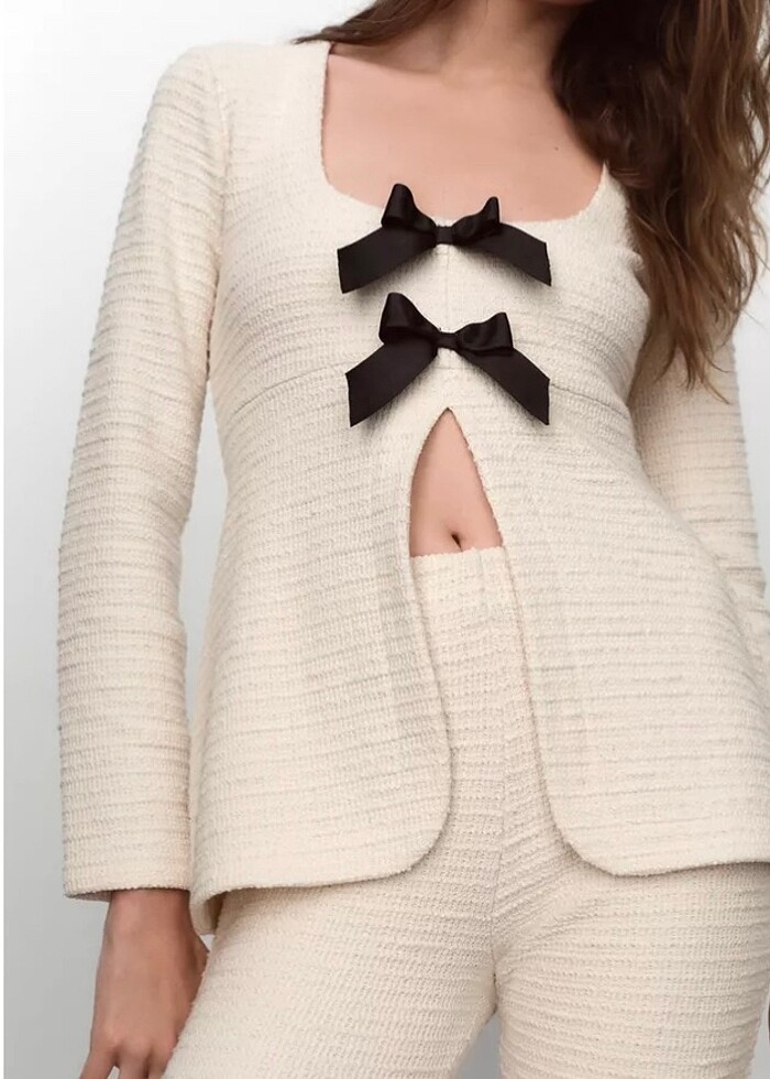 Yuvarlak yaka. Uzun kollu top. Kontrast fiyonk detaylı ön kısım. Açıklık detaylı alt kısım. Etiketli çok tatlı ürün m beden çünkü kalıbı hafif dar ama esneme payı da var. Alınırsa Zara kutusu ile gönderim sağlıyorum.