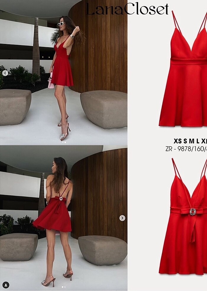İnce askılı, V yaka elbise. Sırtı taşlı fiyonk detaylı. Etek ucu kloş. Yanı gizli fermuar kapamalı
