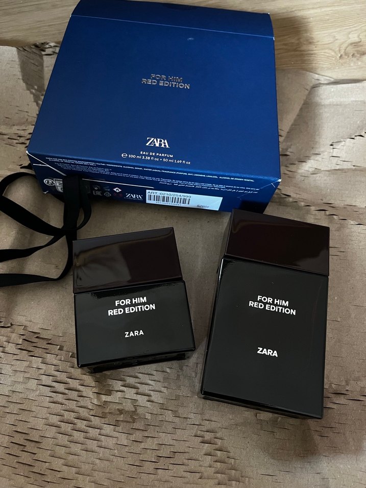 Zara For Him Red Edition, şık siyah şişede yoğun ve derin kokulu erkek parfümüdür. Mavi kutu ile birlikte sunulur.