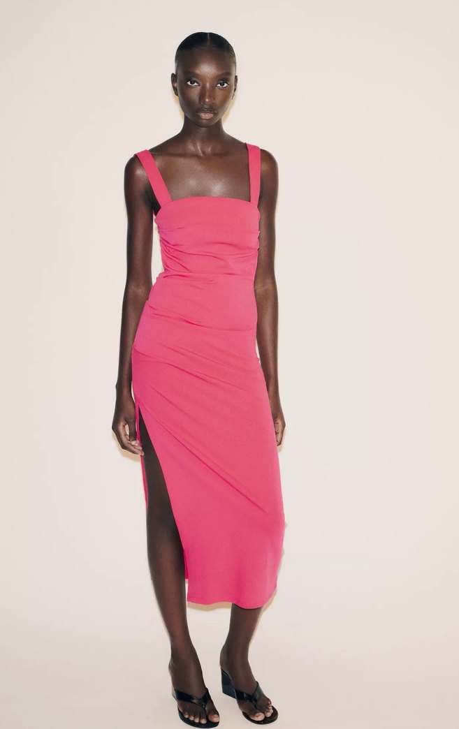 Zara Fuşya Drapeli Uzun Kadın Elbise