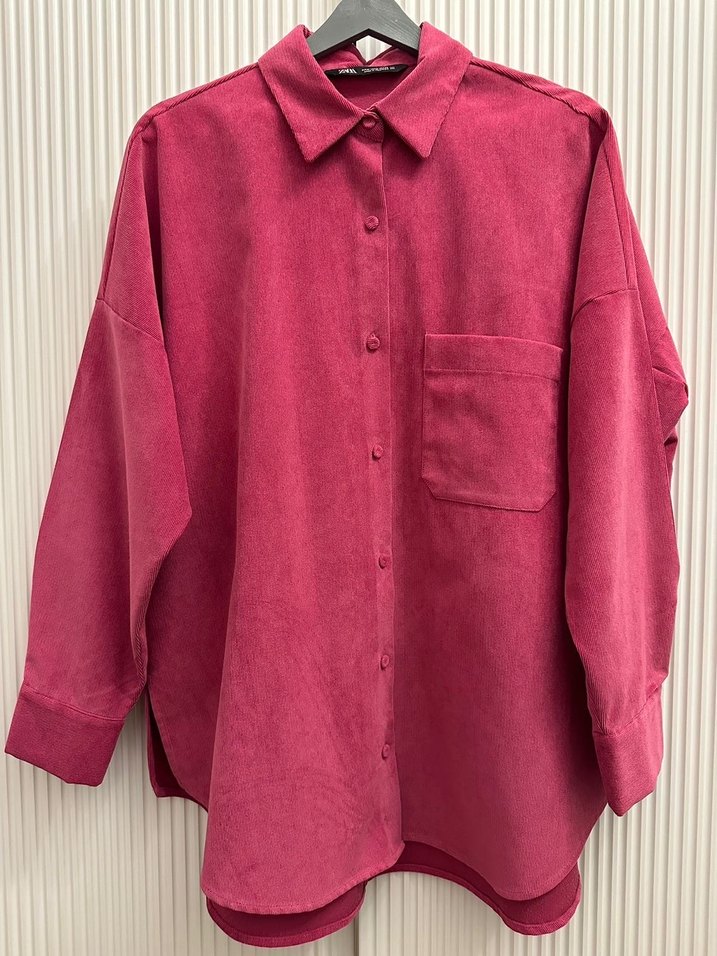 Zara fuşya ince kadife fitilli gömlek