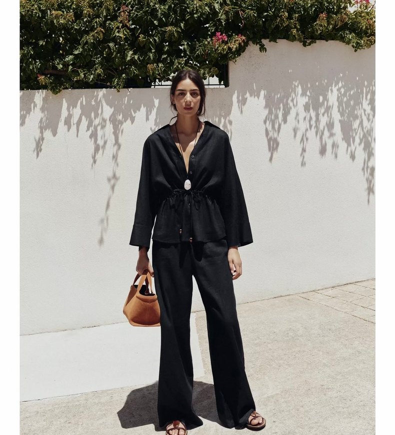 Zara genis paca keten pantolon