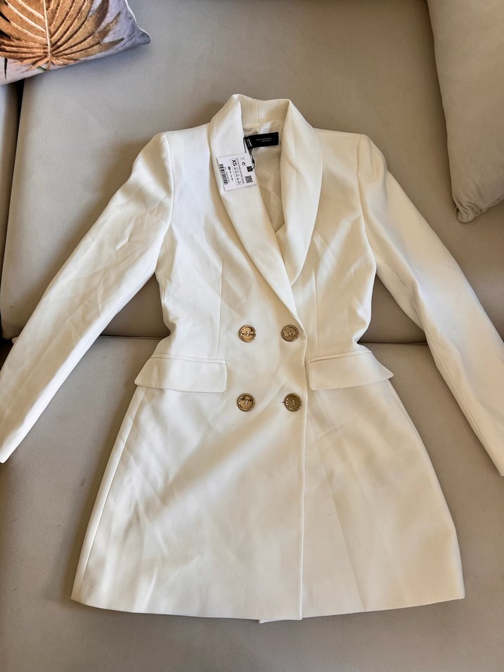 Zara Gold Düğmeli Beyaz Blazer Ceket