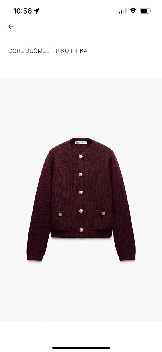 Zara gold düğme detaylı bordo hırka. L beden. Defosu vs yok.