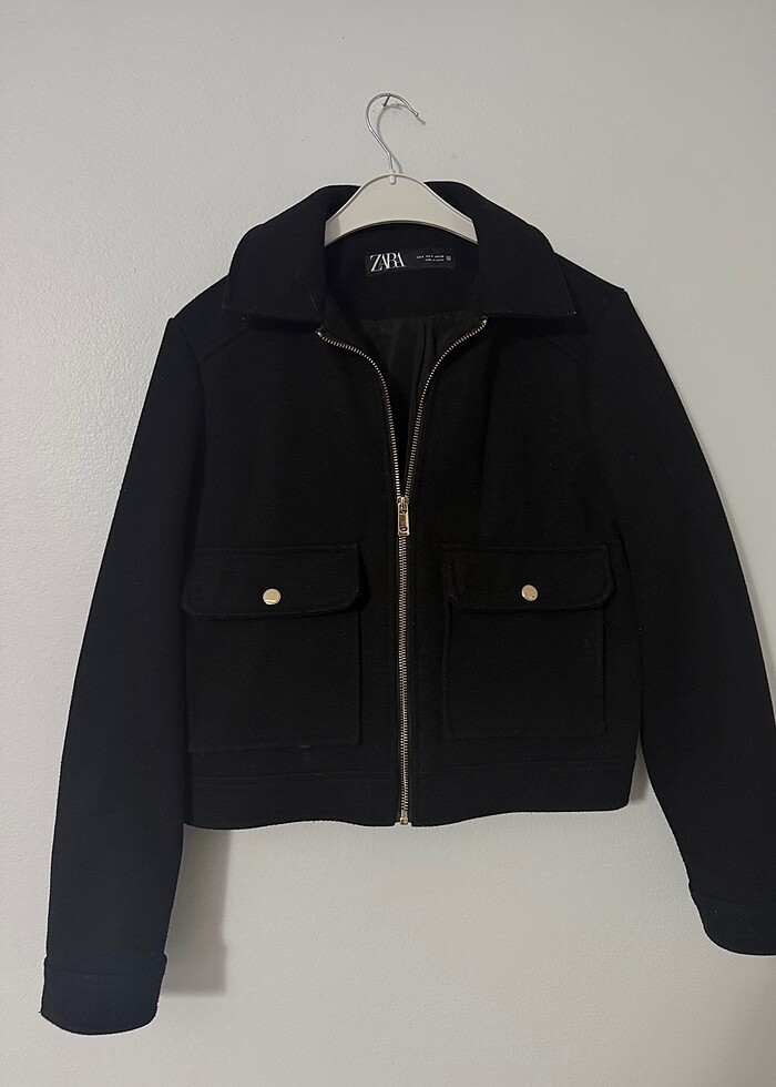 Zara Gold Fermuarlı Siyah Kaşe ceket