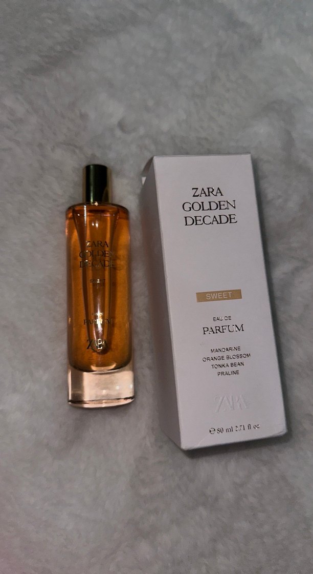Zara Golden Decade Sweet kadın parfümü, mandalina, portakal çiçeği, tonka fasulyesi ve praline notalarıyla sıcak ve tatlı bir koku sunar. bir kere kokusuna bakılmıştır fotoğraftaki gibi duruyor. Fiyat sondur❗️