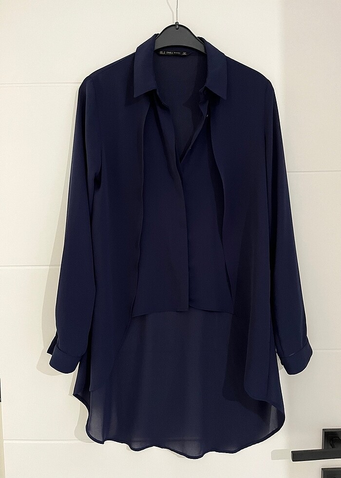 Zara marka önü kısa arkası uzun şifon lacivert gömlek defosuz hatasız