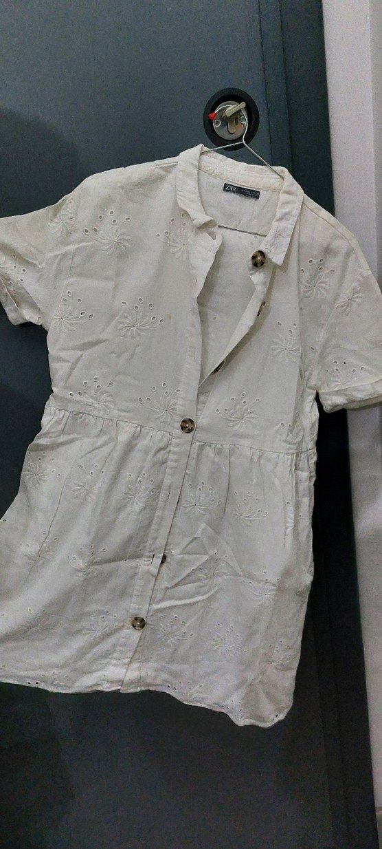Beyaz keten gömlek, kısa kollu, yakası kesik, nakışlı detaylıdır. Düğmeli, bol kesim ve kısa boyda, bohem tarzına uygundur. hicbir kusur yok boy: 88 koltuk altindan koltuk altina en : 45