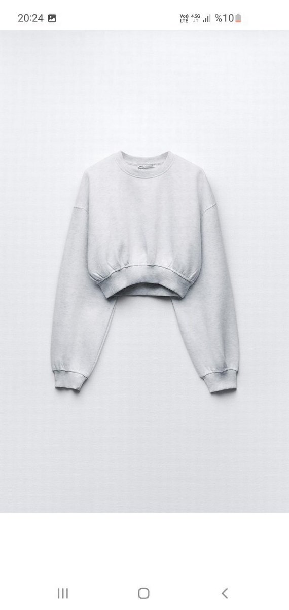 Zara basic crop model sweatshirt. gri melanj renk. S beden. içi şardonlu düsük omuzlu crop model. yeni karton etiketi üzerindedir. Siyah rengi ürünün modeldeki duruşunu göstermek için ekledim sadece gri renk ürün gönderilecektir.