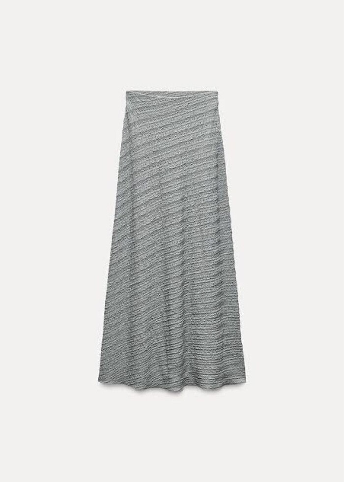 Hiç giyilmedi, dolaba asmak için yıkandı. Ürünün boyu normalden uzundur. S beden. Mavi gri renk. Dokulu kumaştan üretilmiş etek. Yüksek belli ve elastik bel bandı.