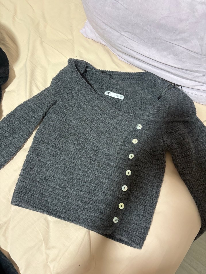 Zara Gri Düğmeli Kadın Triko Kazak