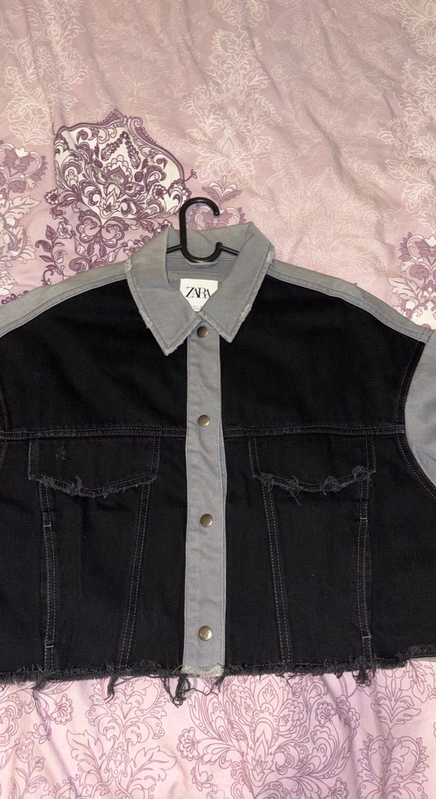Düğmeli, yakalı ve oversize kesimli gri denim yelek. Baskılı desenli, kolsuz ve günlük kullanıma uygun sokak stili.