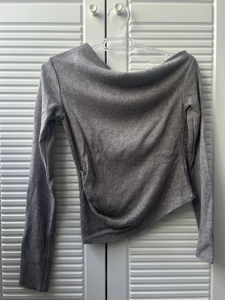 Zara- Gri Düşük omuzlu Uzun Kollu Drapeli Bluz - Görsel 1