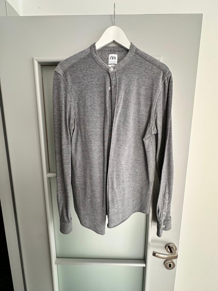 Zara Gri Erkek Keten Yüksek Yakalı Gömlek
