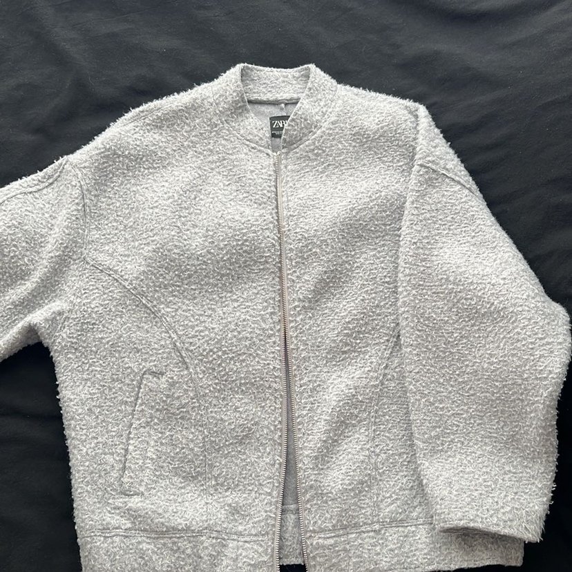 Zaranın popüler ceketi.Kadınlar için gri renkte, uzun kollu, yuvarlak yakalı ve fermuarlı bu ceket, yumuşak ve sıcak kumaştan yapılmıştır. Rahat kesimiyle günlük kullanıma uygundur.