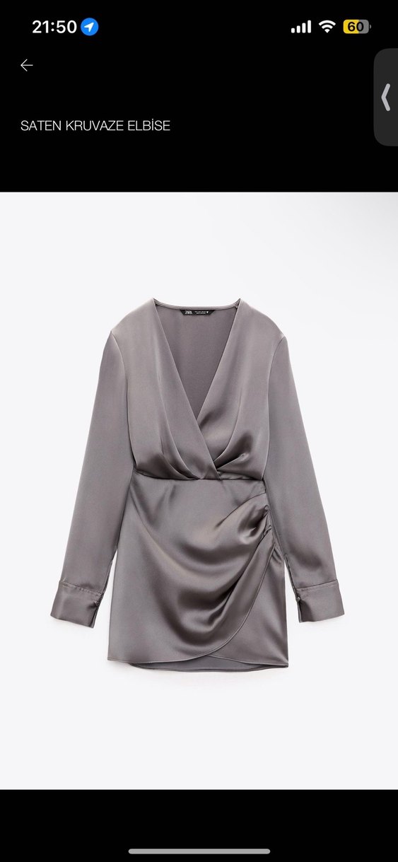 Zara Gri Kadın Midi Saten Elbise