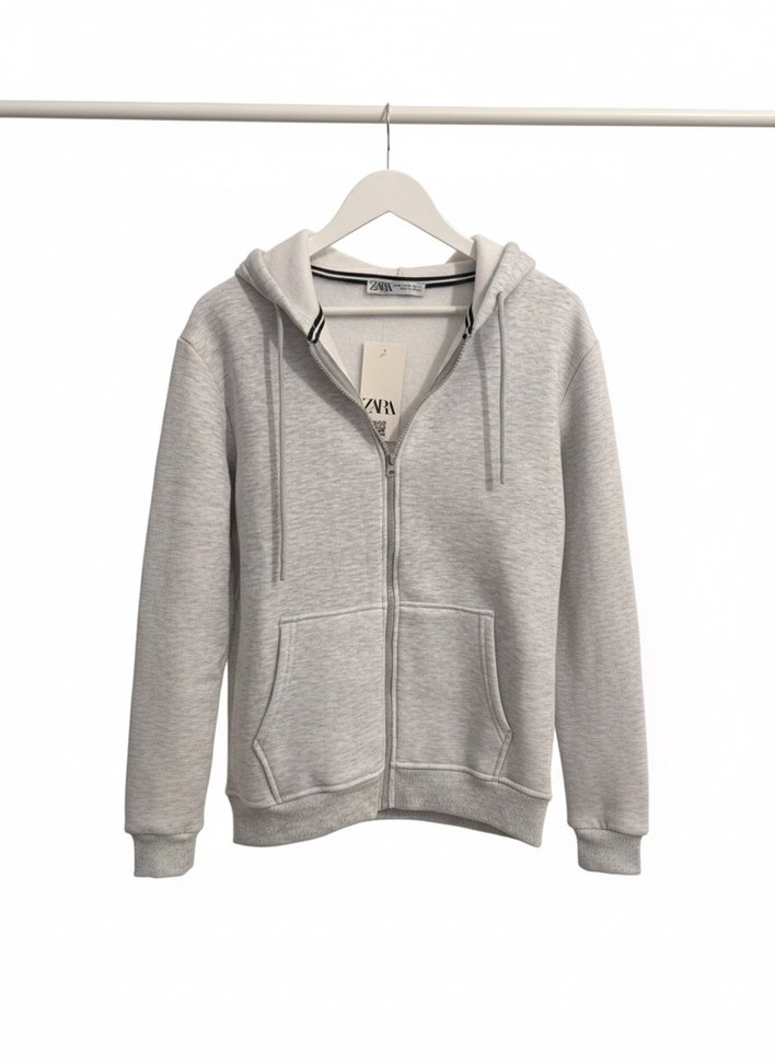 Zara Gri Kapüşonlu Fermuarlı Unisex Sweatshirt