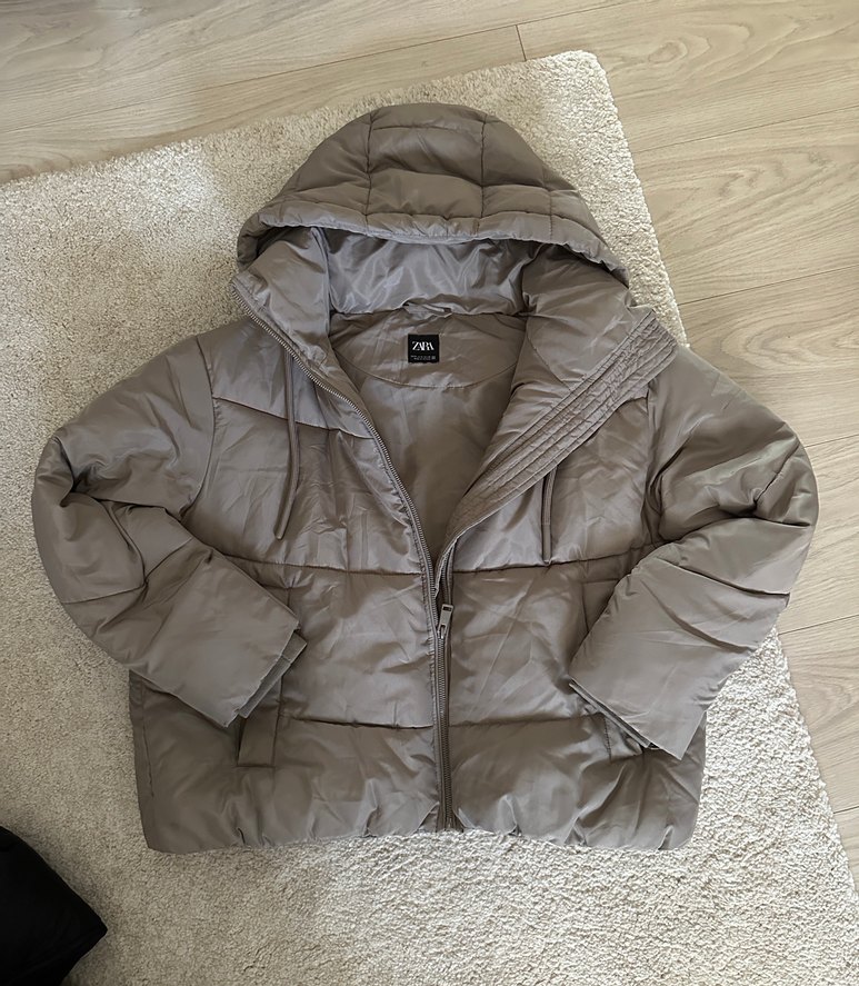 Zara Gri Kapüşonlu Kadın Mont