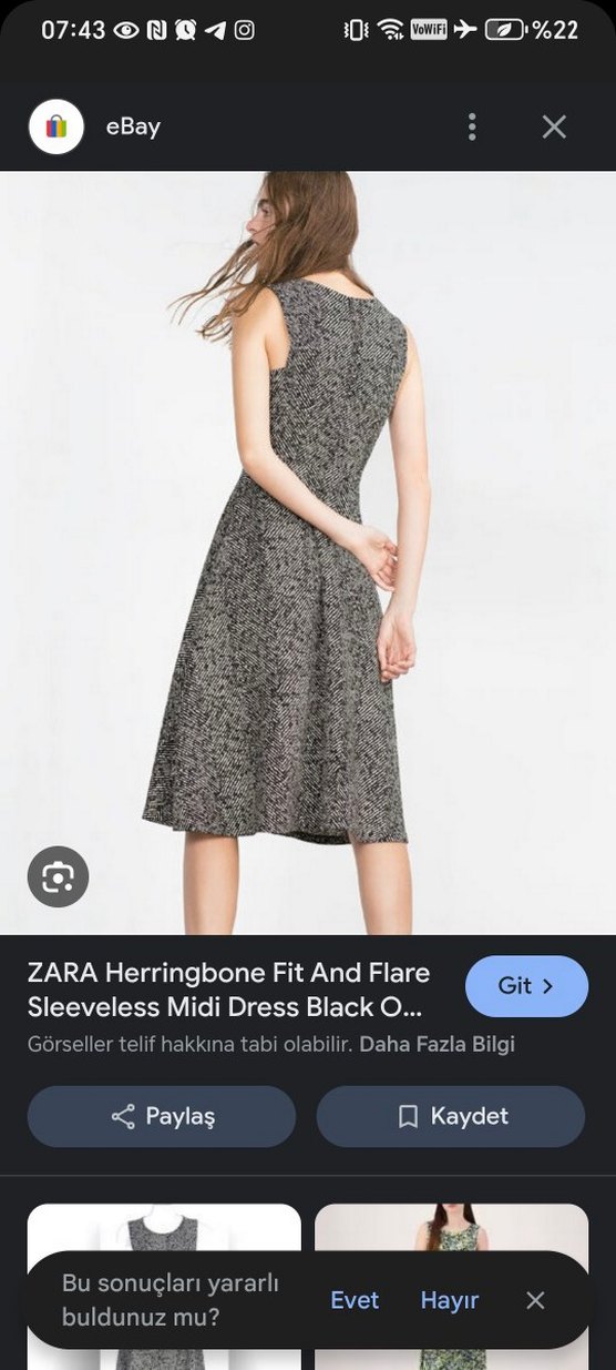 Zara'nın gri kolsuz midi elbisesi, V yakalı ve fit-and-flare kesimiyle minimalist ofis tarzı için uygundur.