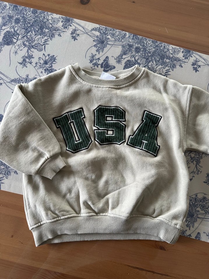 Gri renk, nakışlı USA yazılı, yuvarlak yaka ve uzun kollu, örme kumaştan bol kesim erkek sweatshirt. Rahat ve günlük kullanım için uygundur. Bikac kes giyildi