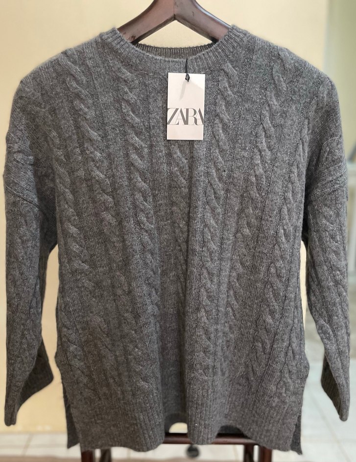 Zara markalı gri örgü kazak, yuvarlak yaka ve uzun kolludur. Rahat kesimi ve sade dokusu ile günlük kullanıma uygundur. Tek ebat M-L uyumludur Ölçüleri boy 60cm en 60 cm oversize kesimi dokusu yumuşacık Kombinlerde hem şık hem spor görünümler için uygun ürün ihracat fazlasıdır Kargo aynı gün özenle yapılır