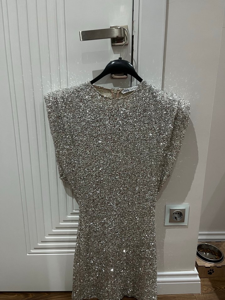 zara gri payetli mini elbise