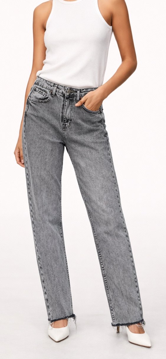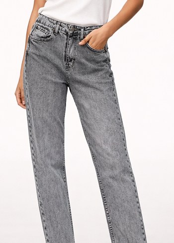 Gri renkli, regular fit kesime sahip midi uzunlukta denim kadın pantolon. Günlük kullanıma uygun, rahat ve şık bir seçim. 36 beden.