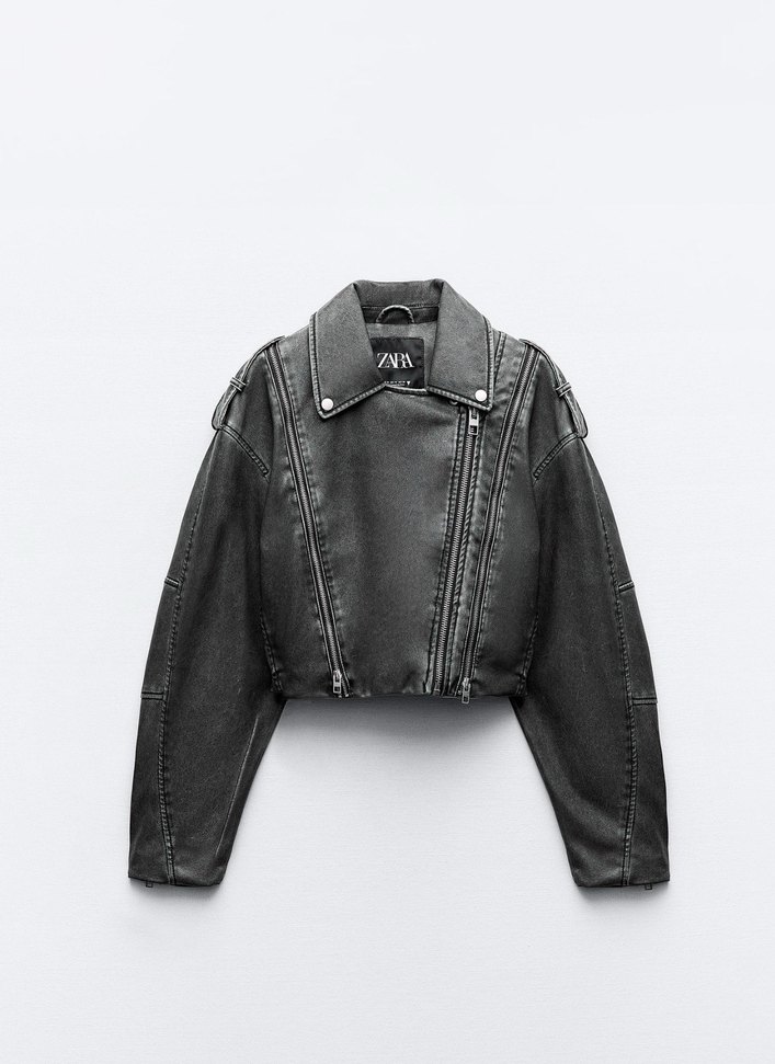 Zara Gri Siyah Denim Biker Ceket