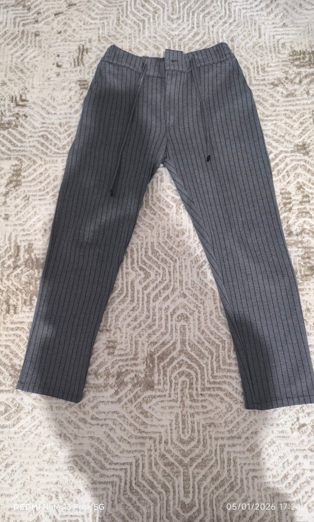 Gri renkli, midi boy, pilili ve regular fit kesime sahip erkek kumaş pantolon, günlük kullanıma uygundur. Birkaç kere kullanıldı Dar geldiği için satıyorum. Bağlamalı ip detaylı, arkası lastiklidir. Düğmesi fermuarı mevcuttur. Kumaşı sonbahar mevsimi için uygundur. M bedendir. Boyu 93 cm dir, bel 36 cm dir. Basen 50 cm dir. #öneçık #zara #ütüistemeyen #pantolon #erkekpantolon #rahatpantolon #bağcıklı #sonbaharlık