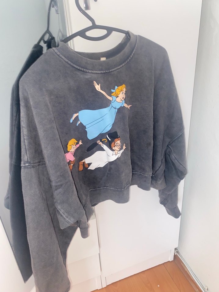 Zara Gri Uzun Kollu Baskılı Kadın Sweatshirt (peter pan baskılı)