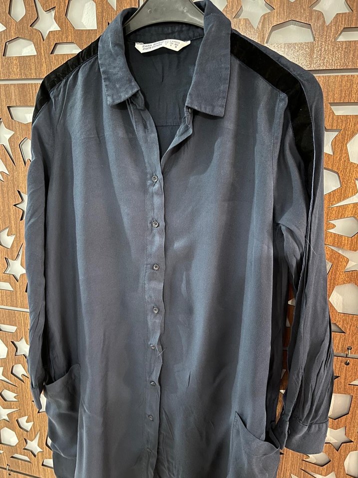 Gevşek kesimli, düğmeli önlü ve yakalı bu kadın gömleği, ipeksi kumaştan yapılmıştır. Uzun kollu ve uzun boylu, günlük rahat sokak giyimine uygundur. Desensiz gri renktedir.