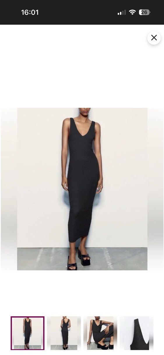 Gri renkte, örme kumaştan yapılmış, V yakalı ve kolsuz uzun elbise. Rahat ve salaş kesimlidir.