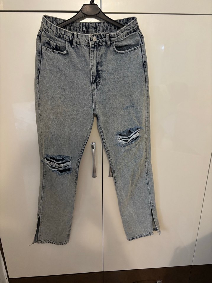Zara Gri Yırtık Detaylı Bol Kesim Kadın Kot Pantolon