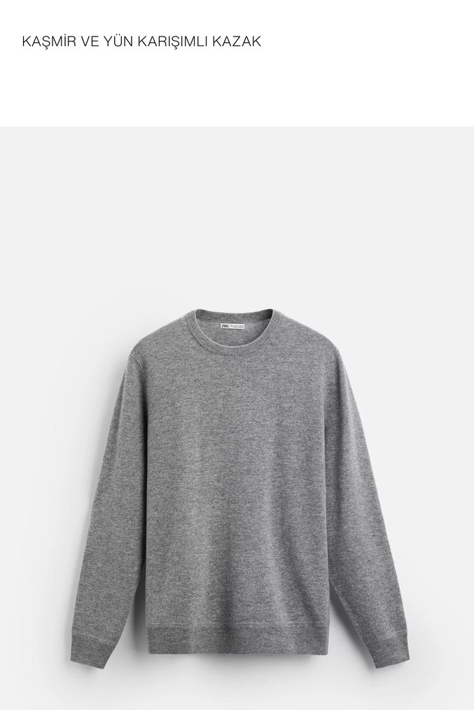ZARA Gri Yün erkek Kazak