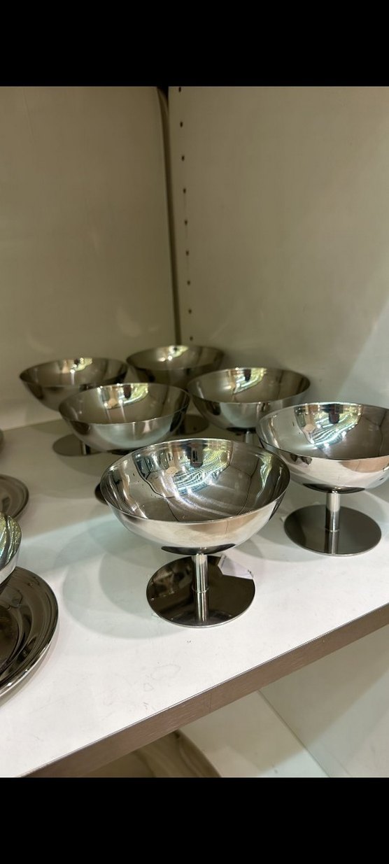 Parlak beyaz metal ayaklı kaseler, tatlı veya atıştırmalık servisleri için uygundur. Yansıtıcı yüzeyiyle modern bir görünüm sunar.